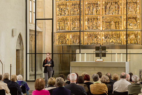 Mit den sehr guten Erfahrungen aus Schwerte wurde sodann am 21. Mai 2013 am „Aktionstag Kultur" unter dem Motto „Kulturelle Bildung" (am Welttag der kulturellen Vielfalt für Dialog und Entwicklung der Vereinten Nationen) noch einmal das Retabel in St. Petri, Dortmund in einer Präsentation durch das Projektteam und Pfarrerin von Bremen vorgestellt und vor Publikum gewandelt.