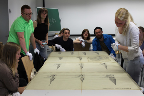 Sieben Semester lang – vom Wintersemester 2013/14 bis zum Wintersemester 2016/2017 – wurden im Rahmen von »Planvoll« modellhaft Seminare und Studienprojekte sammlungsbasierter Lehre an der TU Dortmund entwickelt und durchgeführt. Das Projekt war dabei von Anfang an curricular in den verschiedenen Studiengänge verankert, so dass auch zukünftig die Arbeit mit den Originalen des A:AI im Regelstudium fortgeführt werden kann. Studierende unterschiedlicher Studiengänge im Rahmen der »Diversitätsdialoge in Studium und Lehre« zusammen miteinander ins Gespräch zu bringen, ermöglichte den Studierenden nicht nur den transdisziplinären Austausch. Vielmehr konnten so auch die fachübergreifende Sprech- und Diskussionsfähigkeit, das Wissen um Aufgaben und Tätigkeiten beteiligter Wissenschaften und Gewerke und damit ein tiefer gehendes Verständnis für die Objekte gefördert werden.